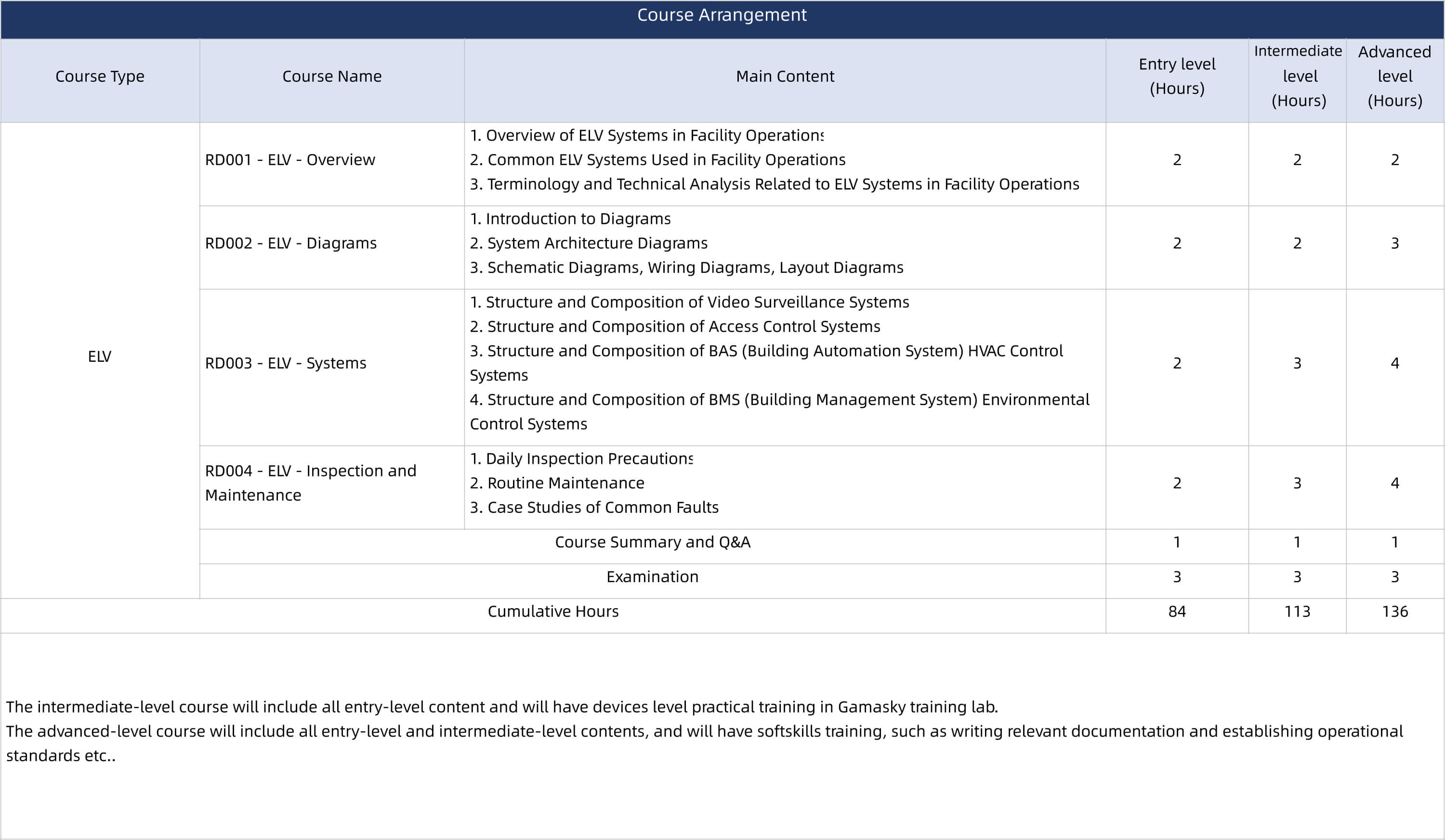 Each module incorporates disciplines like mechanics, electrical systems, automation control, fire protection, and integrated management to ensure comprehensive knowledge and skill development.